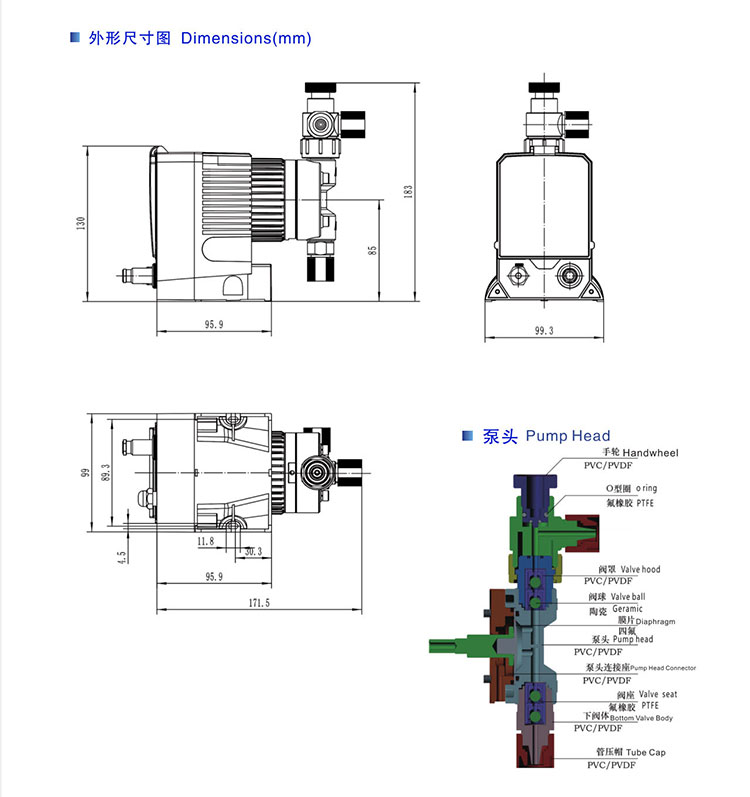 愛力浦JCMA電磁計量泵 擁有PVC、PVDF、304、316四種泵頭材質