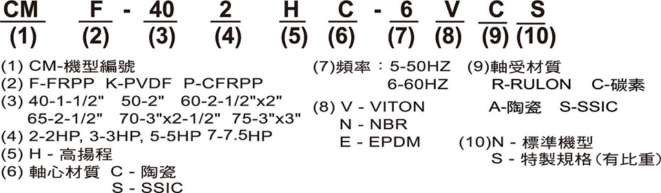 無軸封可拆式磁力耐酸堿泵浦CM型(高揚程)技術規格: