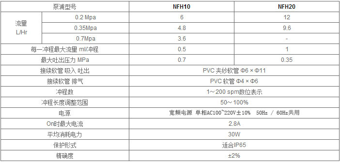 NFH日機裝電磁式隔膜計量泵產品參數: