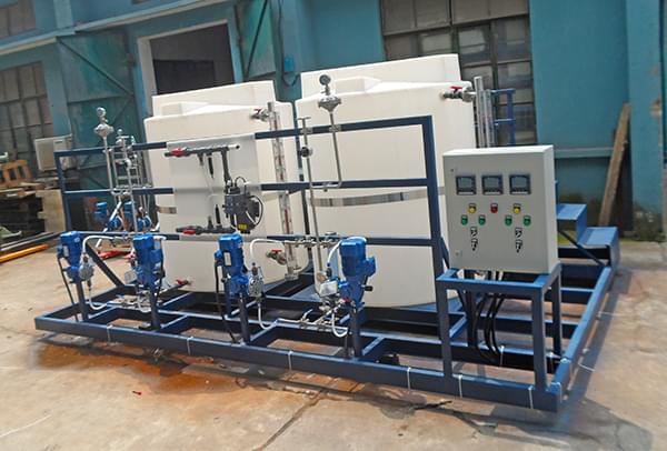 配置:該加藥裝置由計量泵、控制系統、流量計、變頻器、標定柱、背壓閥、安全閥和不銹鋼管道組成。描述:該加藥裝置由主要用于造紙行業投加各種膠劑。為了保證系統24小時正常運行,該裝置使用一用一備的組合形式,為了管道使用壽命更長,所以管道均采用SS304材質及氬氟焊焊接技術。因造紙行業各階段的工藝不同,控制需要了解設備的運行狀態以及當前流量,從而更的投加藥劑。該加藥裝置主要用于造紙行業,以及需要DCS控制的加藥系統。