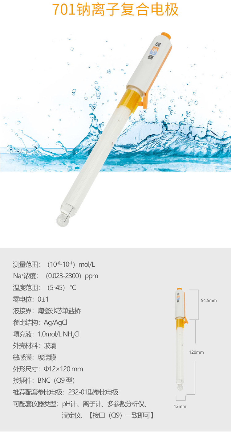 701型鈉離子復合電極 雷磁實驗離子選擇性電極 傳感器探頭