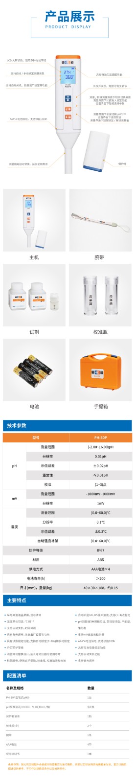 【雷磁】筆式PH計酸度計PH-30P