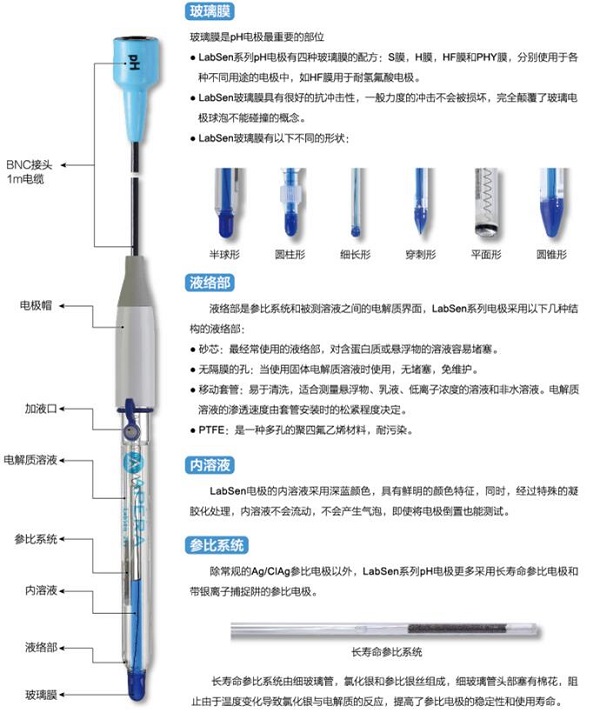 三信LabSen751不銹鋼護套穿刺ph計電極技術參數: