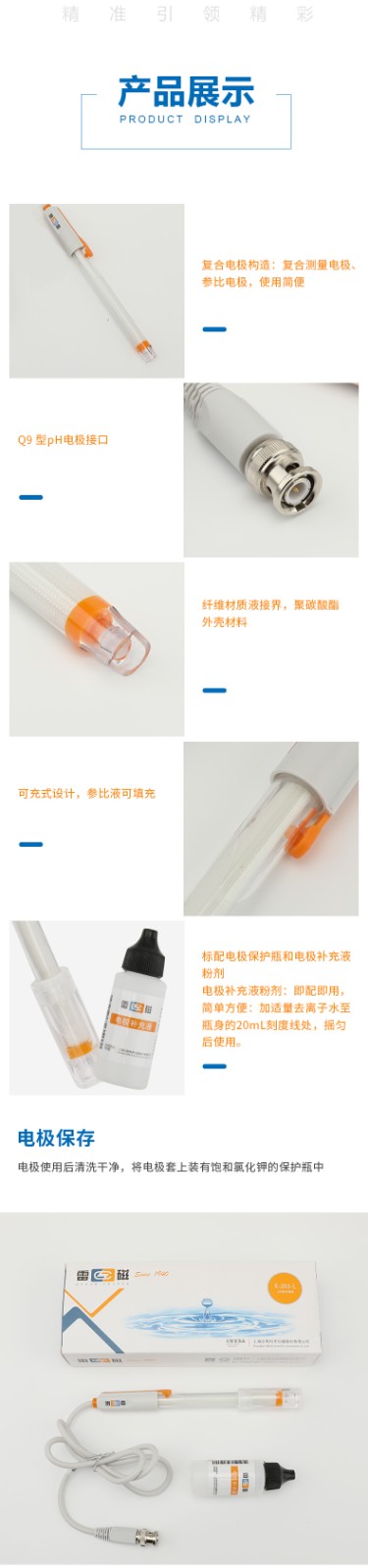 【雷磁】實驗室 pH復合電極 E-201-L型
