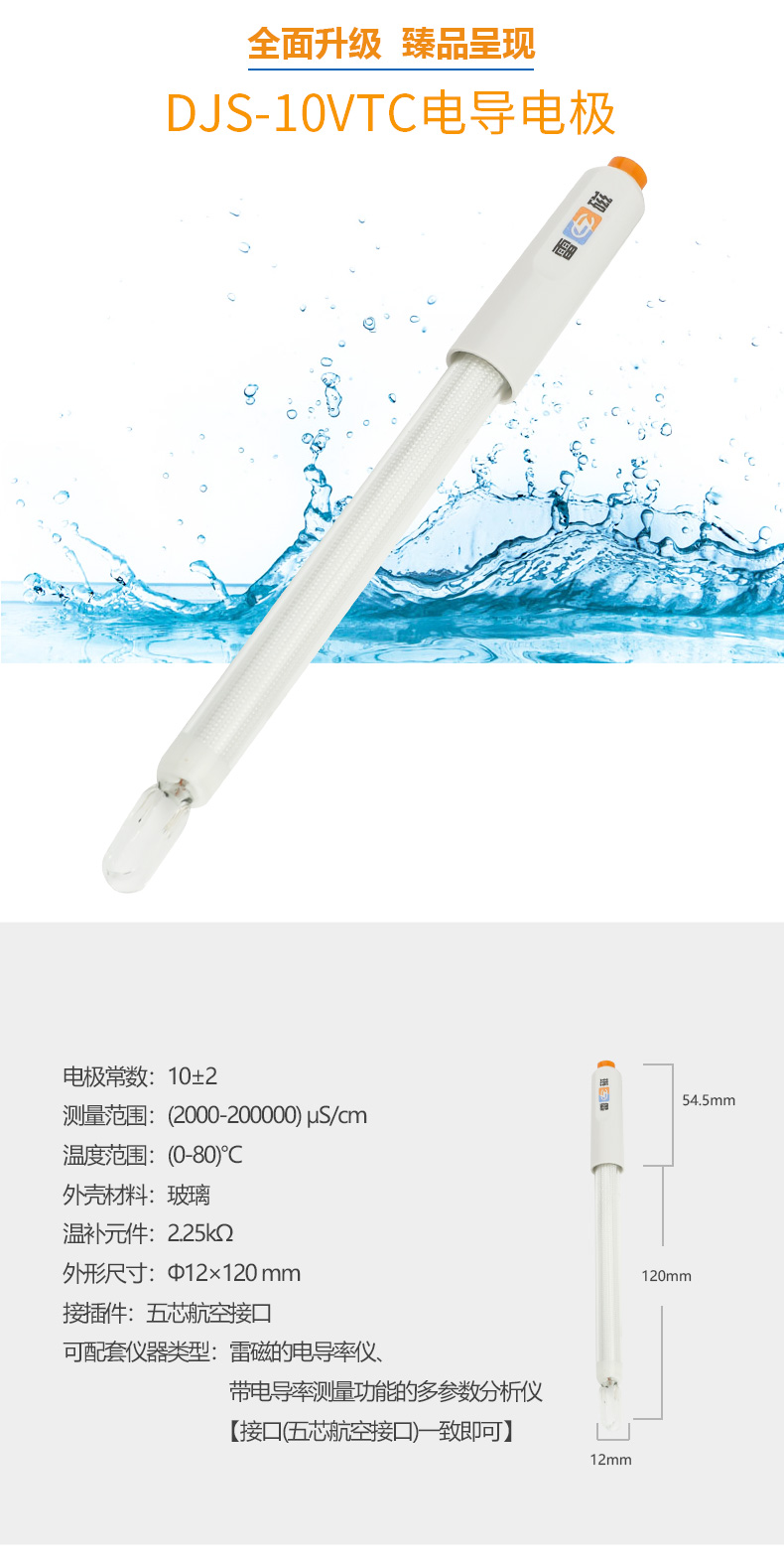 【雷磁】 實驗室電導率傳感器 DJS-10VTC 型電導電極【鉑黑】
