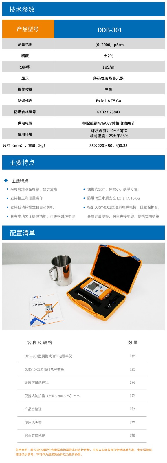 【雷磁】DDB-301型便攜式油料電導(dǎo)率儀航空燃料機(jī)油等電導(dǎo)率防爆