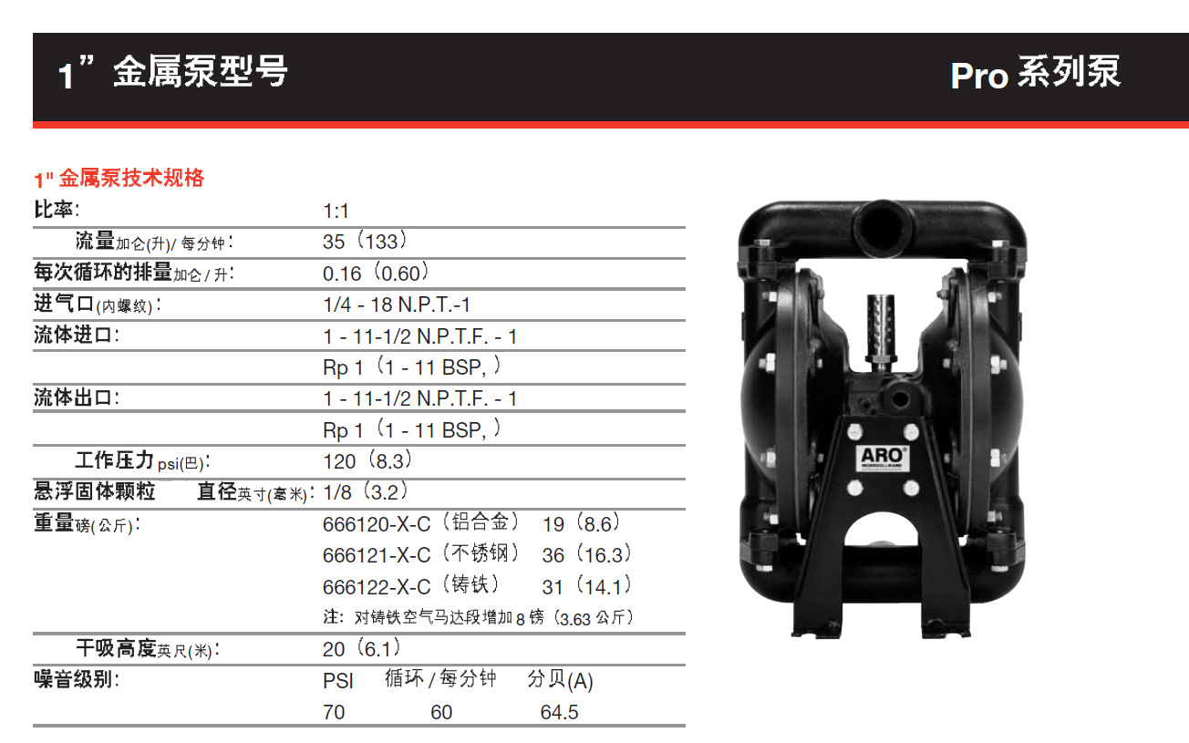 【ARO】英格索蘭氣動隔膜泵666120/666320金屬系列